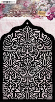 Door het 'Jenine's Mindful Art Collection 3.0 - Mask Stencil A6 - 05 (Baroque)' heb ik met DDBD structuur pasta nog wat motieven aangebracht.